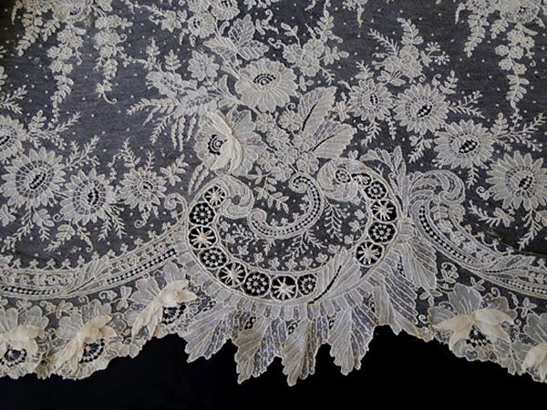 Ещё одна разновидность фламандского кружева – это кружево брюссельское . Оно немного проще в технике выполнения. Детали орнамента брюссельского кружева выполняются отдельно и потом собираются в мотивы с помощью тюлевых перемычек. Это кружево в своё время считалось наиболее дорогим. Оно изрядно подкосило в своё время кружевное производство в Англии.