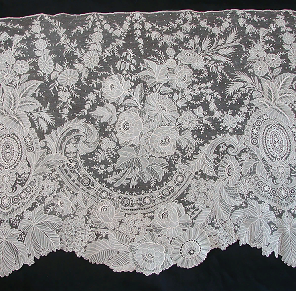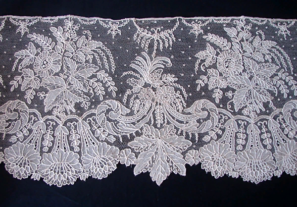 Подобные произведения искусства почти все имеют венецианское происхождение. Но как бы то ни было, совершенно очевидно, что плетение кружев на коклюшках во Фландрии считалось народным искусством. В середине семнадцатого столетия появились кружева с цветочными, растительными мотивами и с изображением вазонов.