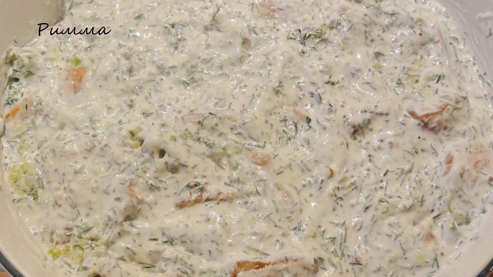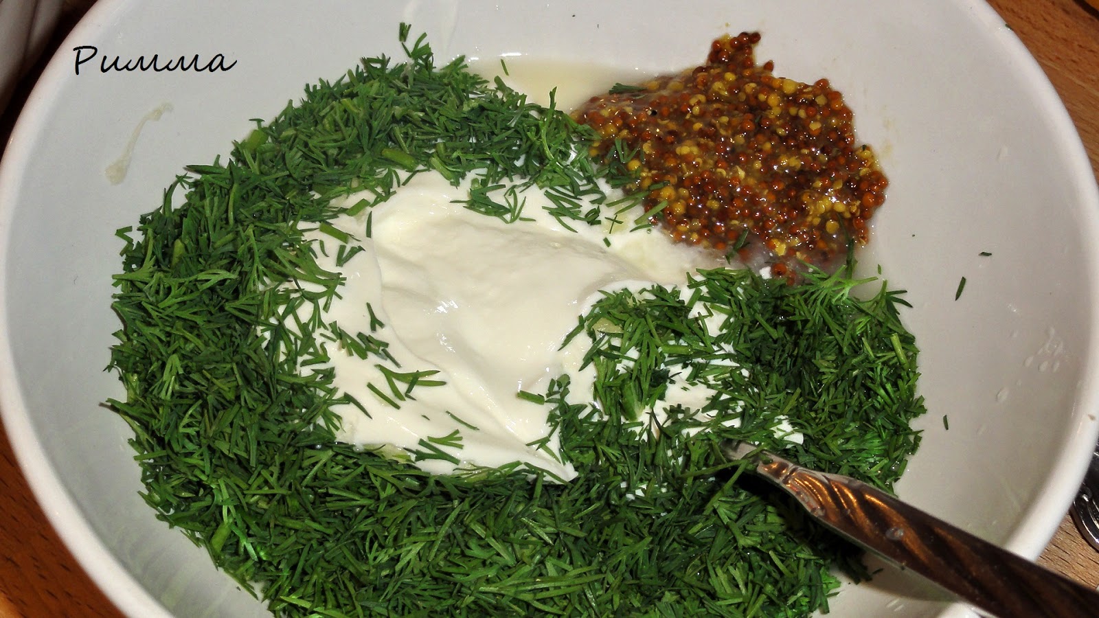 Смешайте сметану, горчицу, сок лайма, рубленый укроп.