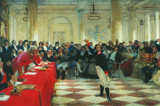 «Пушкин на лицейском экзамене в Царском Селе». Картина Ильи Репина, 1911 год.