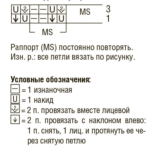Раппорт повторить 3 раза (перед) и 2 раза (рукава и шапочка) и закончить петлями после раппорта.