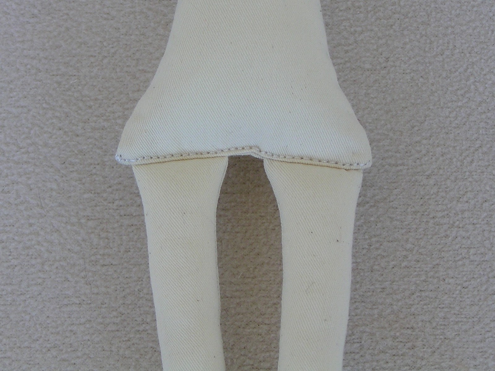 Ноги вставляем в тело и пришиваем швом «назад иголка». Так будет красиво смотреться и кукла сможет сидеть.