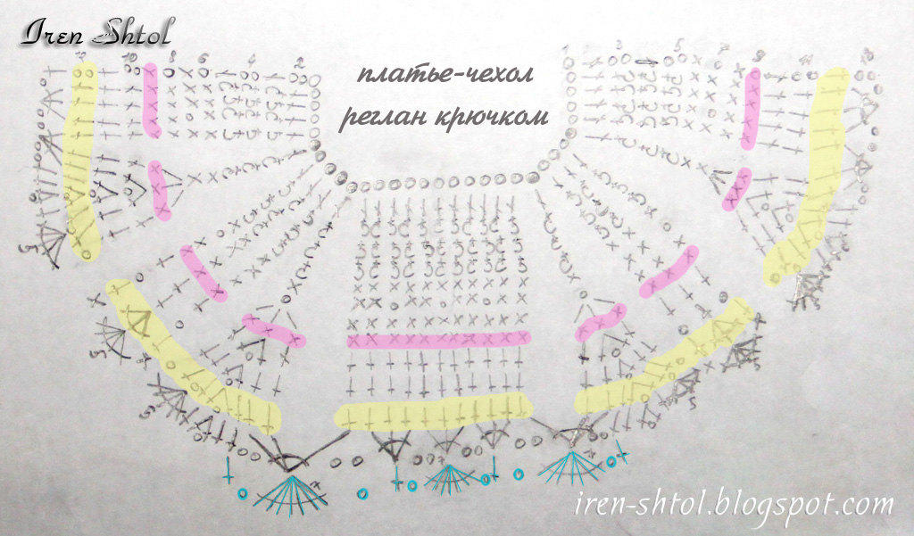 Полночи в пятницу мучила программу по созданию схем крючковых, но у меня она работать нормально отказывалась (дальше второго ряда не рисует). Так что пришлось все же рисовать от руки. На это тоже ушло часа два, но все равно быстрее, чем в программе ) Надеюсь, все же моя многострадальная схема крючкового реглана кому-нибудь пригодится. Но в любом случае она пригодится мне же, лет через -дцать )