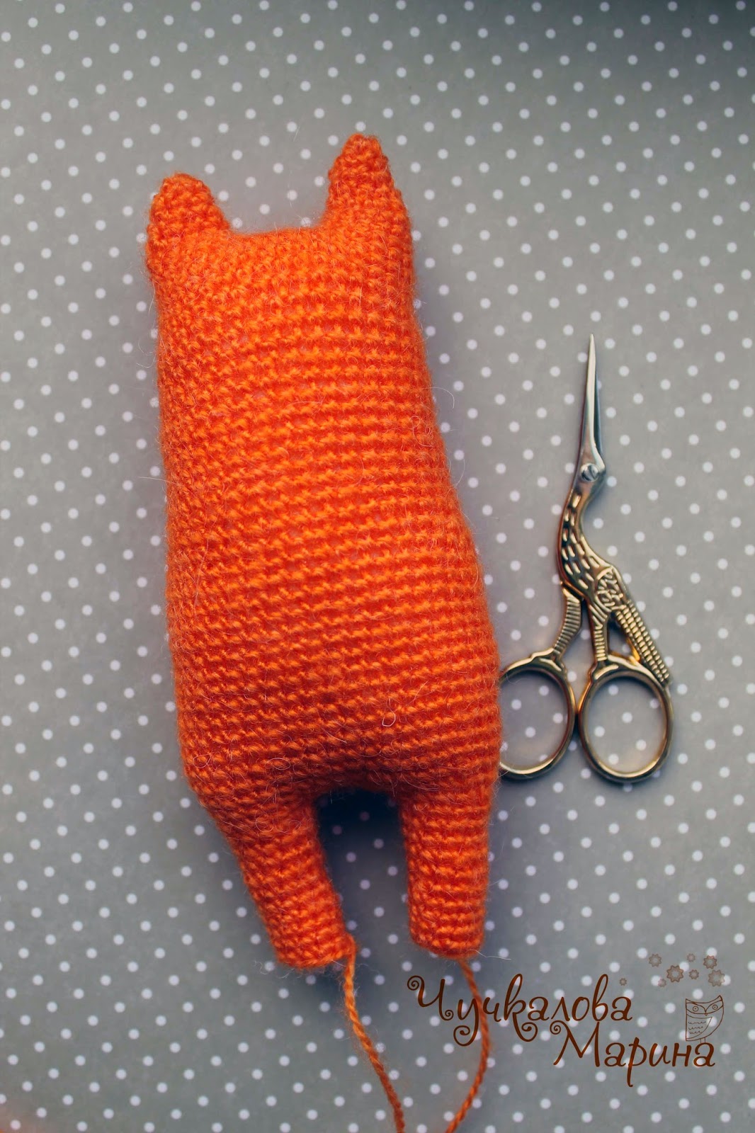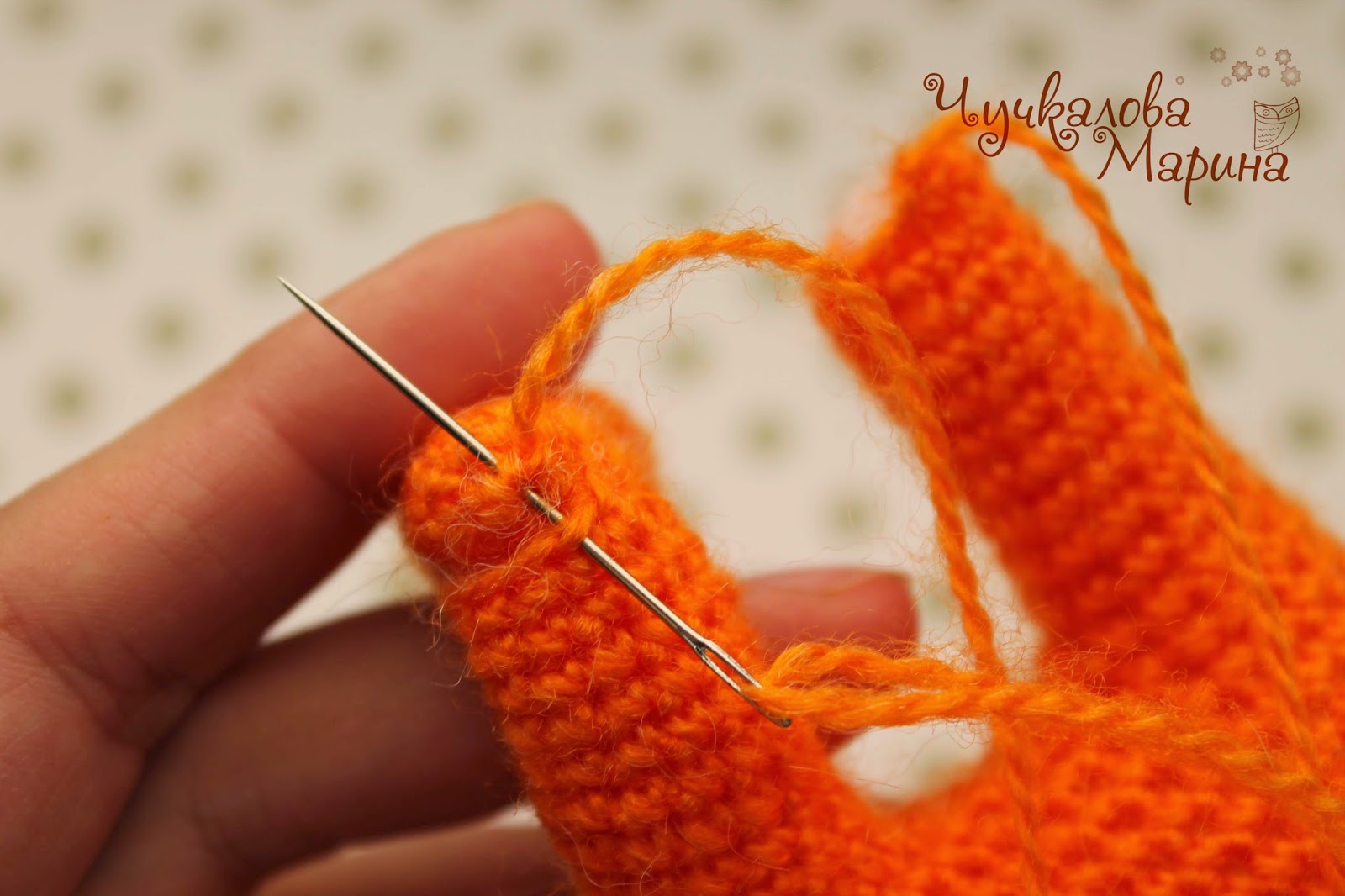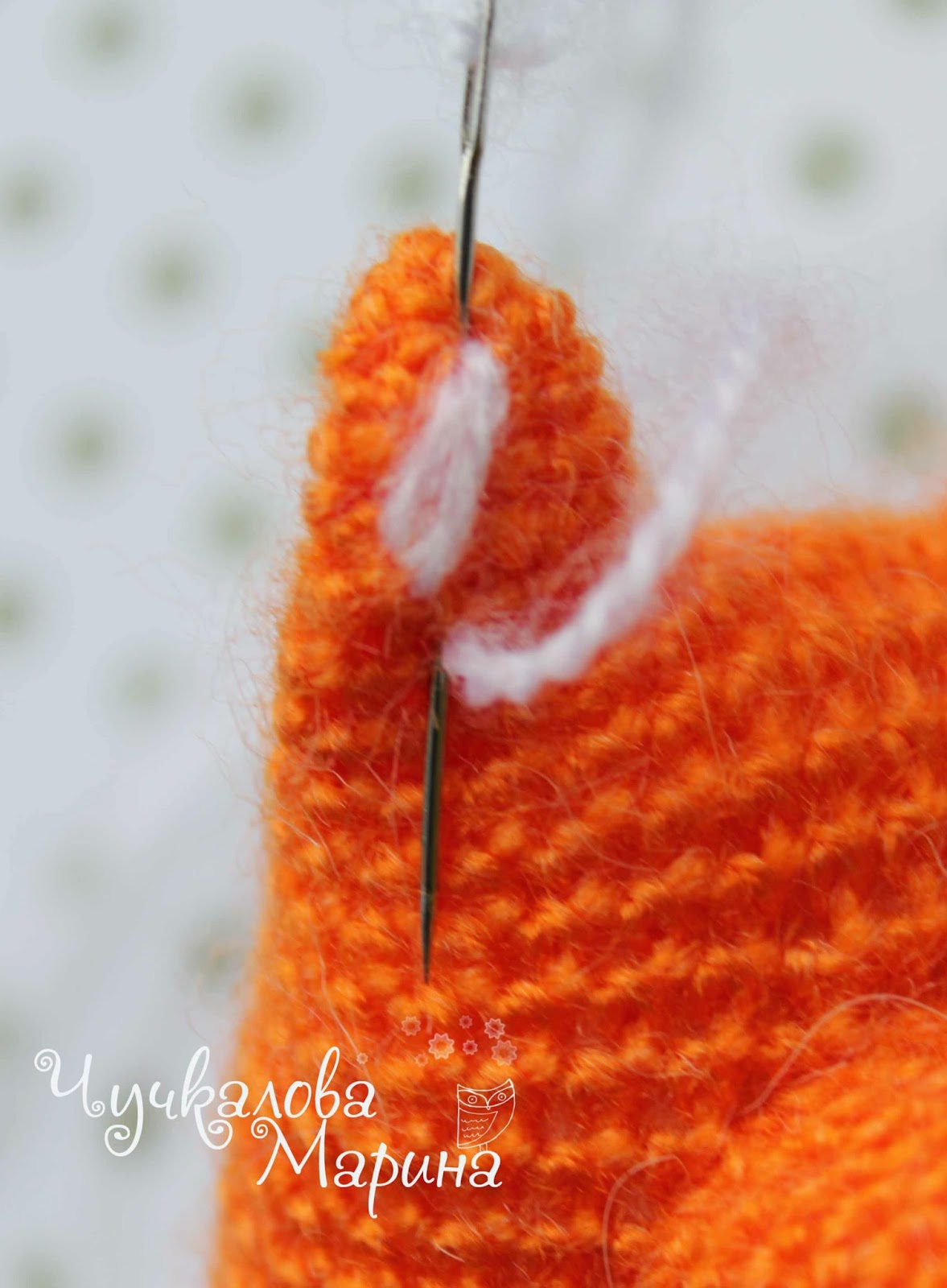 Итак, берем «рыжую» пряжу и начинаем вязать с ушей