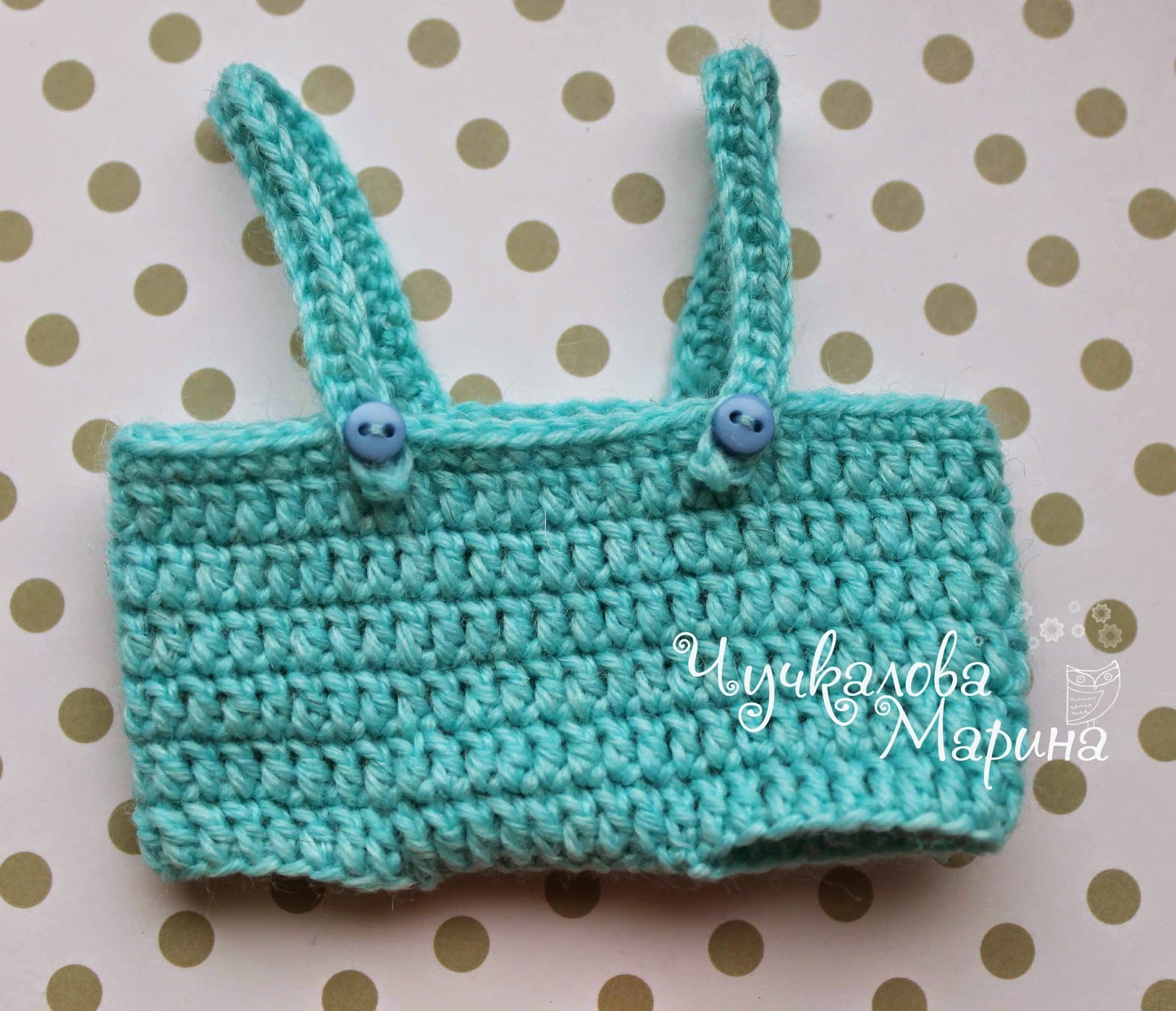 9) Если все устраивает, то вяжем две лямочки. Для одной набираем цепочку из в.п. ( у меня ровно 30 петель.) и. начиная сто второй п. от крючка вяжем сбн. Оставляем ниточки для пришивания.