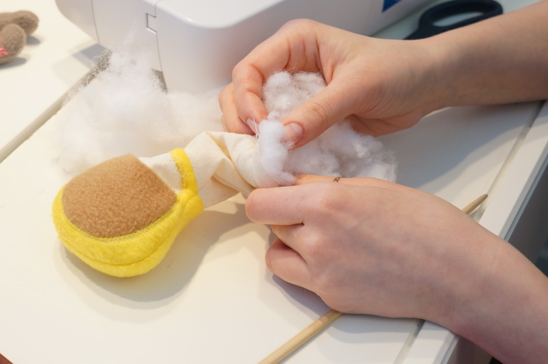 6. Набиваем туго, в процессе наполнитель расправляем руками и палочками,