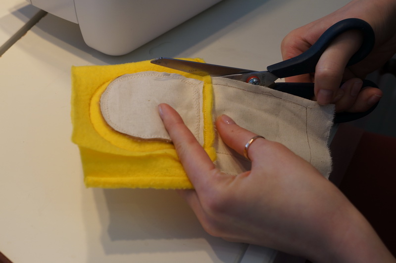 Настала очередь личика, а вот тут вы можете пофантазировать. Выкройку можно расположить вплотную ко шву, и тогда цветная часть станет волосами, можно приподнять, расположив в центре основной выкройки и эта часть будет шапочкой.