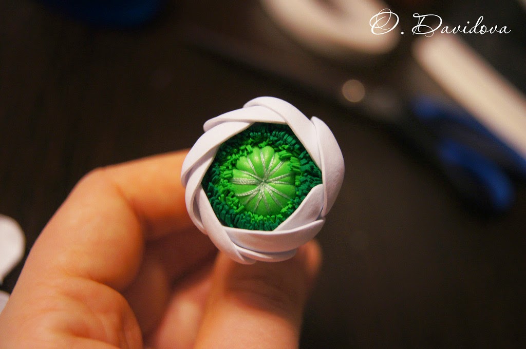 Далее собираем первый ряд, клеим лепестки внахлест друг на друга