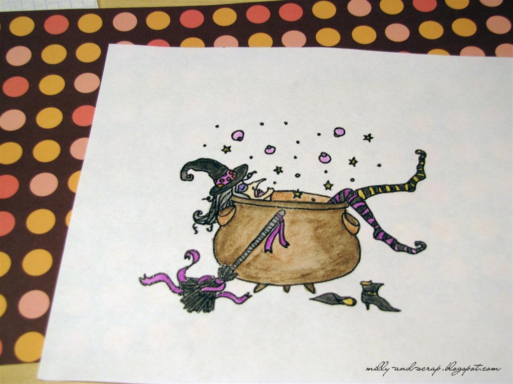 Итак, сначала распечатываю нужную мне картинку - хелоуинская пьяная ведьмочка. На фото мой набор гелевых ручек - купила в обычном канцелярском и прозрачная пудра Fine detail от Ranger (она мелкая и как раз ложиться пудрой, а не комочками и не сильно растекается при обработке феном).