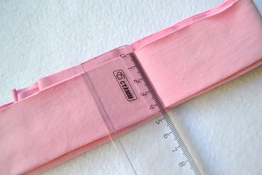Для того чтобы укрепить нижний срез, по краю проклеиваю полосу шириной 0,5-0,7 см из флизелина. Можно взять готовый или нарезать ленту самим.