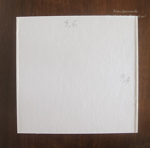 Сначала я вклеила квадраты со сторонами 9,6х9,6 см между прямоугольниками со сторонами 10х9,6 см