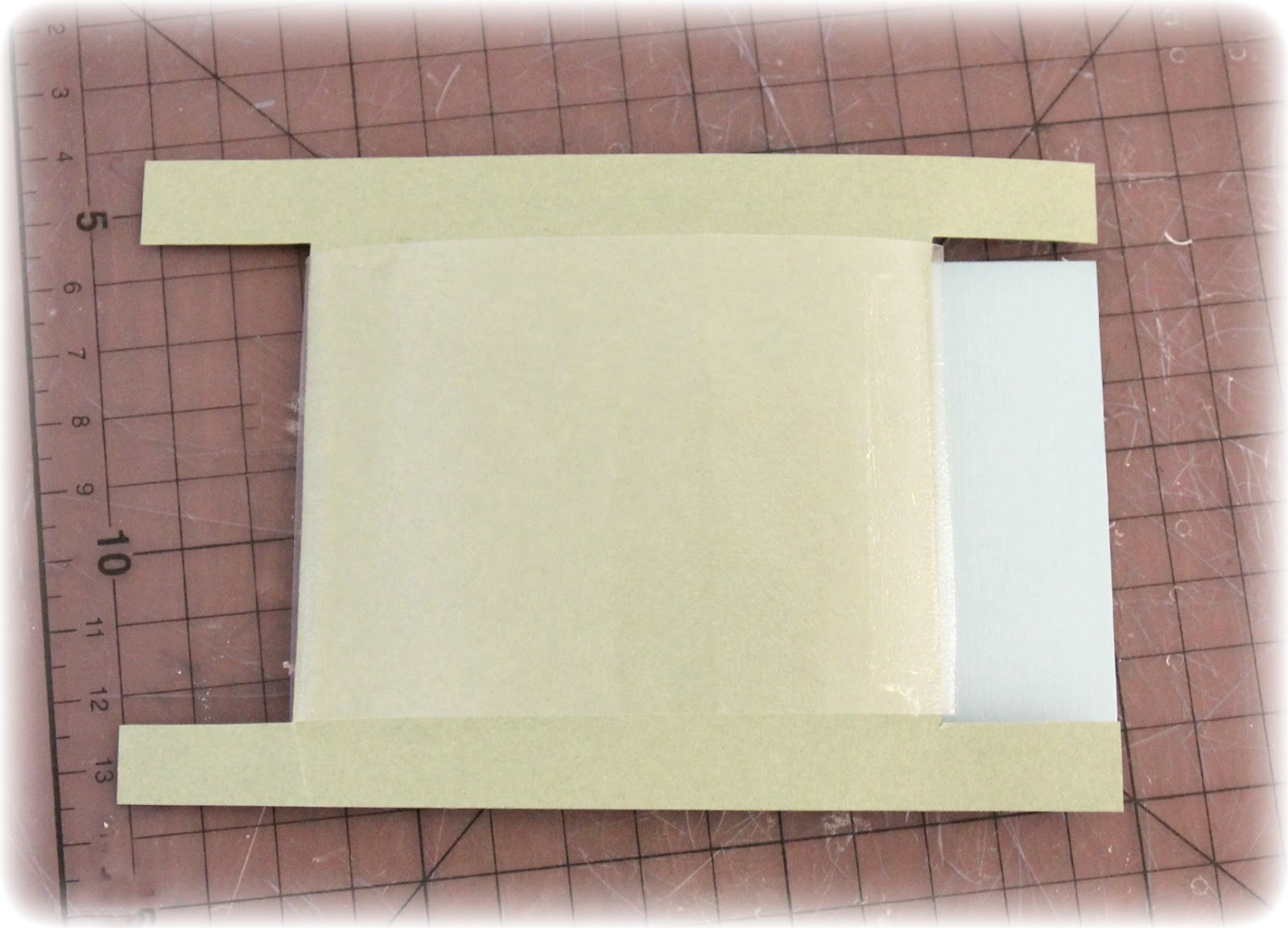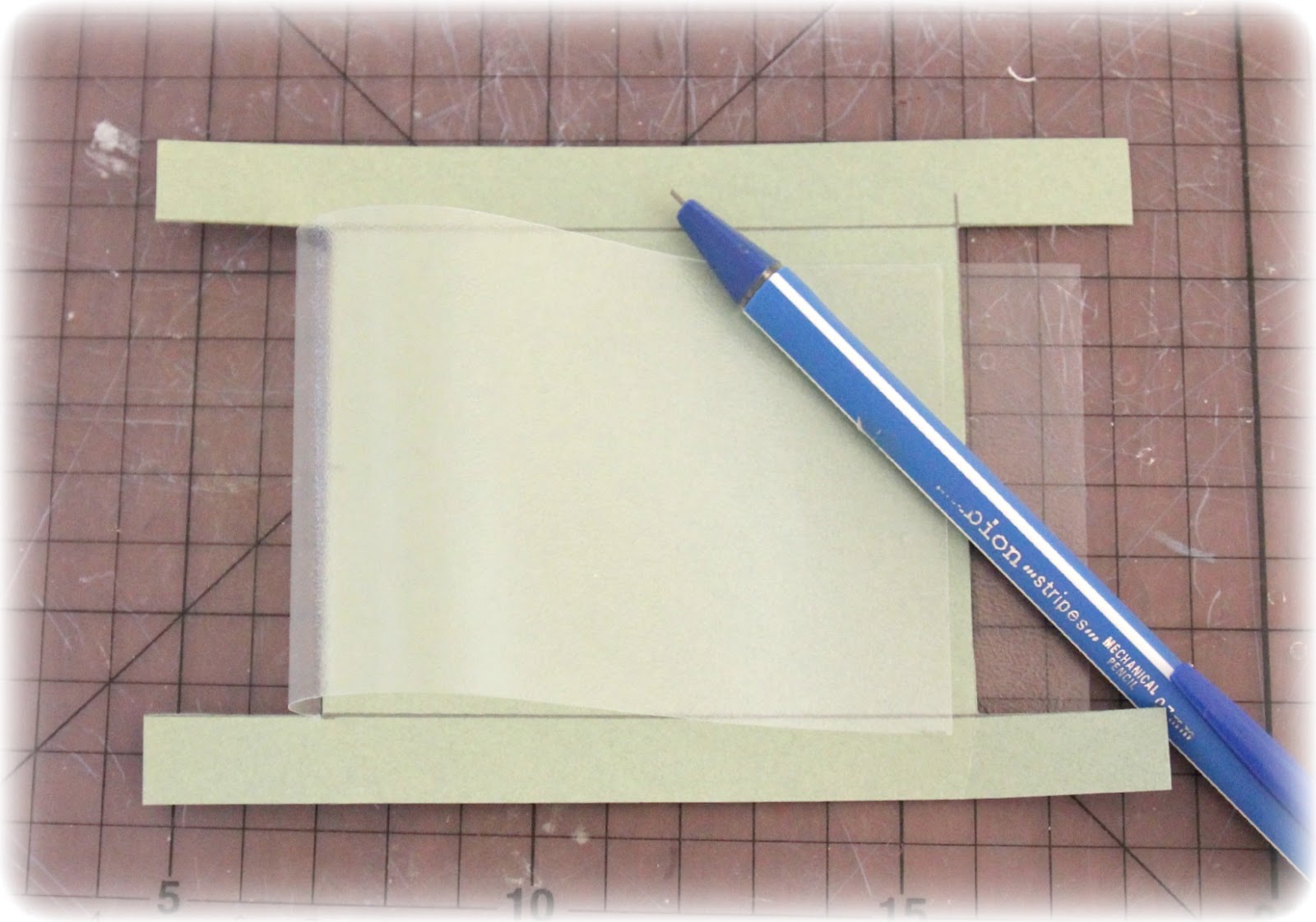 Сделали? Теперь проверьте, хорошо пленочка катается по детали? не туго? нигде не застревает? Теперь в ход идут маленькие детальки - приклеиваем первую, как показано на рисунке - так чтобы край был совмещен с внутренним краем выреза на большой детали - клеим на пленку, а второй край доходил до края основания большой детали.