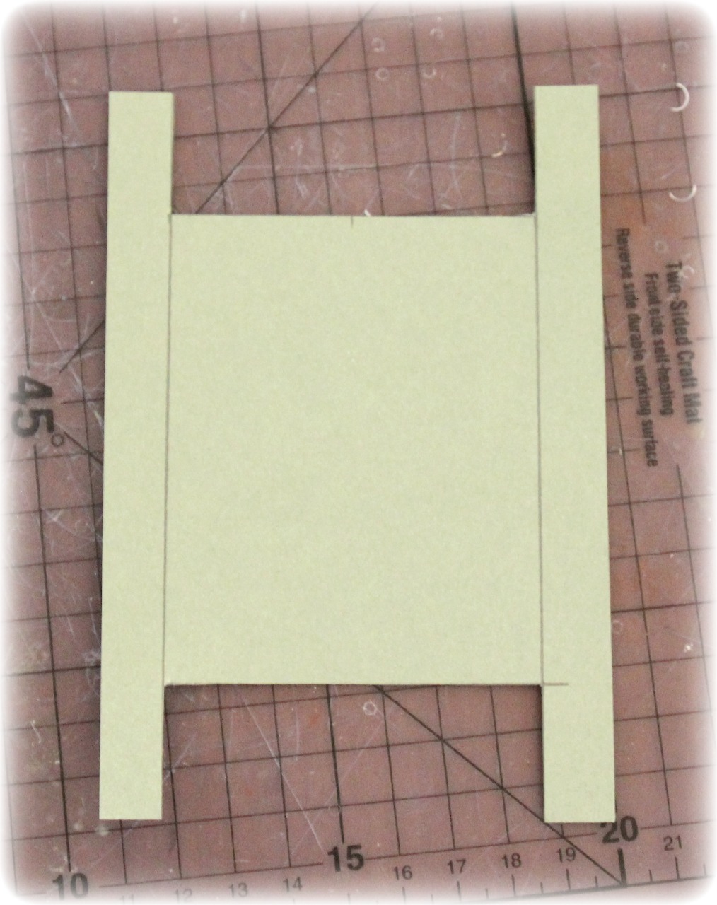 Теперь берем основу открытки сложенную вдвое - наша конструкция должна в нее вмещаться и остаться запас - у меня размер 14 см +/- 2 мм и 9,8 см