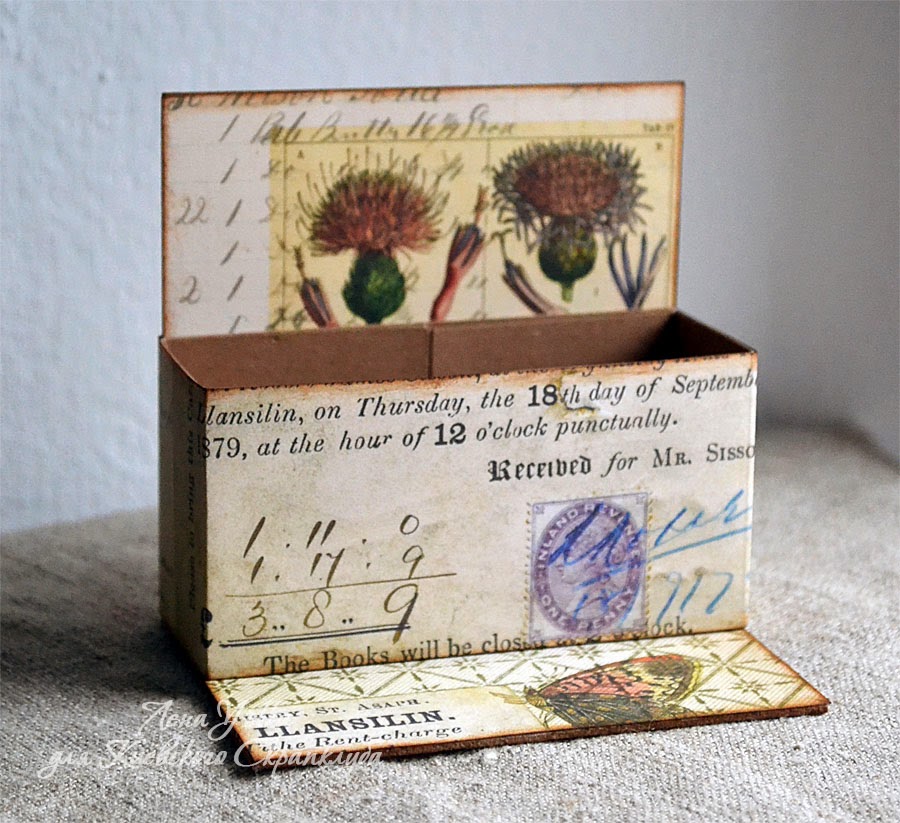 Наклеиваю бумагу на "спинку", а саму детальку приклеиваю к стенке коробочки снаружи.