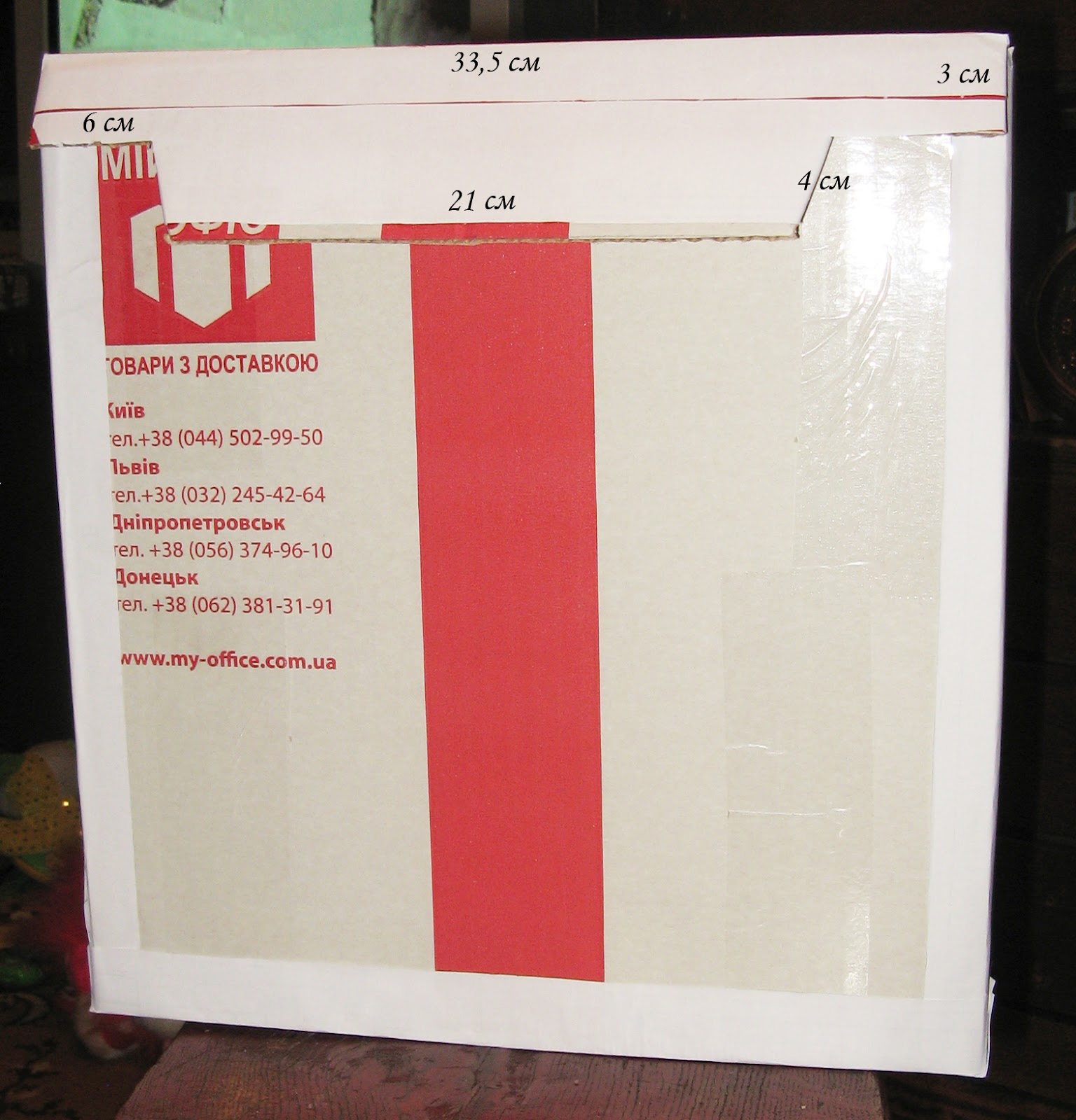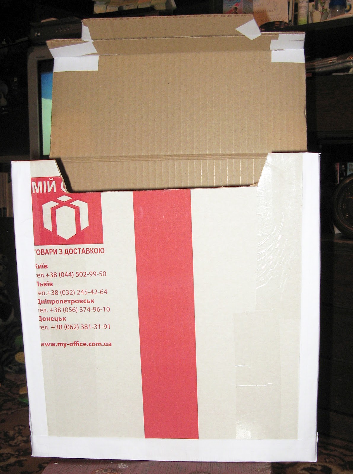 Таким бокс был в самом начале :). Это обычная коробка. Размер коробки 33х33 см., что отлично подходит под скрап-бумагу.