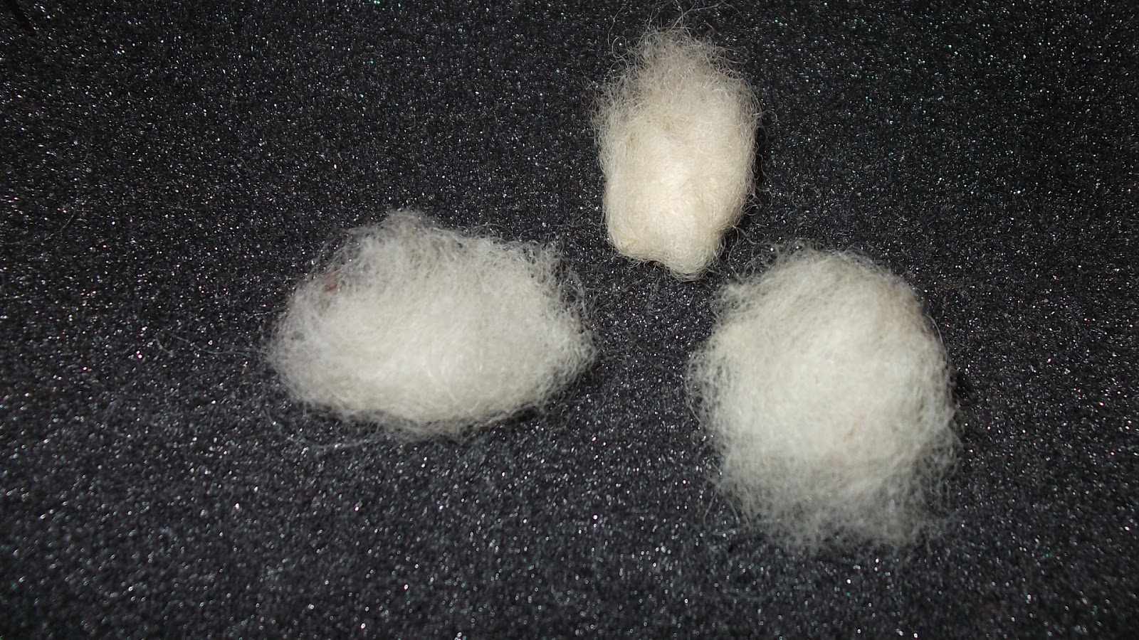 Далее берем белый кардочес. Формируем 3 шарика оставляя на каждом несваленные хвостики.
