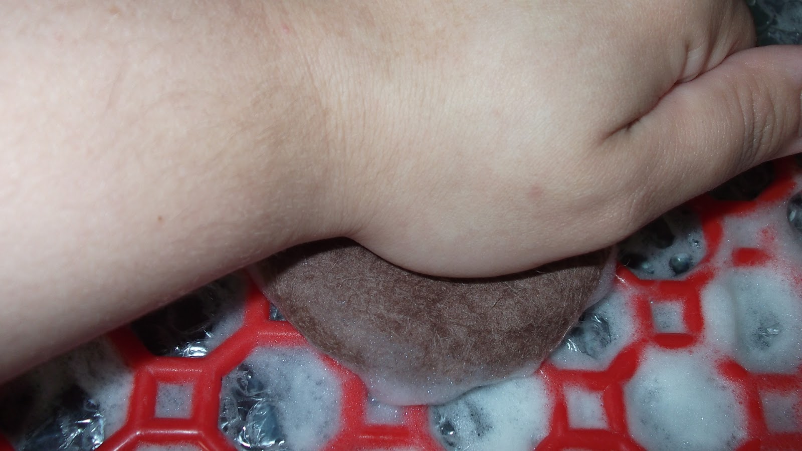 Теперь нанесите еще немного мыла на пальцы и осторожно, круговыми движениями потрите шерсть, которая лежит на макете, в течении минуты.