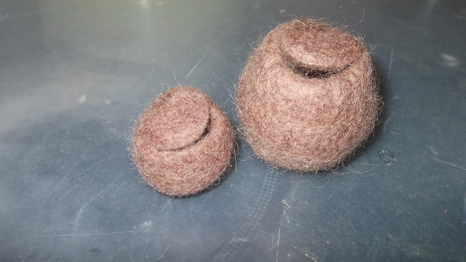Снова кладем изделие между пузырчатыми пленками сворачиваем в рулон и катаем по 30 раз на каждый оборот с каждой стороны. Теперь самое время придать тельцу форму. Сделать это можно с помощью подручных средств, а то и просто собственными руками. Я придавала форму руками. Особое внимание уделите центральной оси тельца с внутренней стороны, вероятнее всего необходимо будет еще немного провалять руками места где кружок (макет) упирался краями в шерсть. Потрите эти места руками,чтобы их довалять.