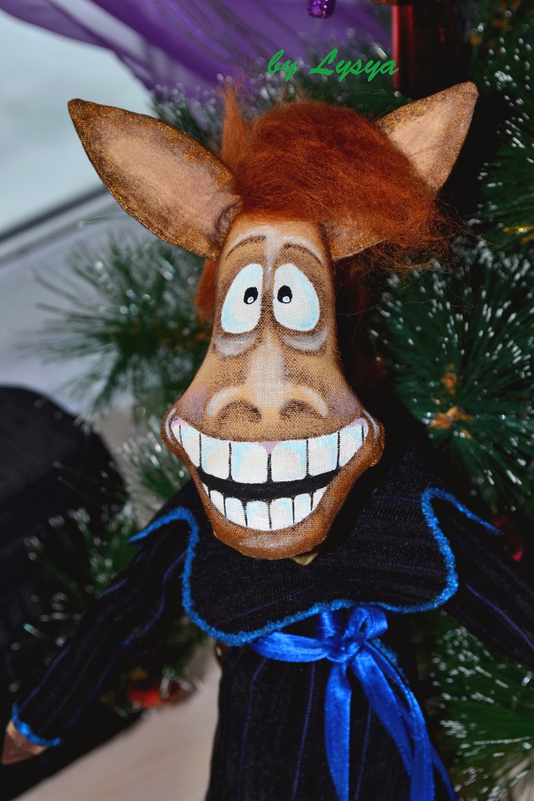 После пошива ёлочных игрушек в виде коней хотела я , так сказать , с конями "завязать". Но не тут -то было ! Давно мне покоя не давал конь в пальто Ю. Моисеенко . А тут такой повод ! Целый ГОД лошади ! Долго не раздумывая , сварганила выкройку и раскроила 4(!) коня .