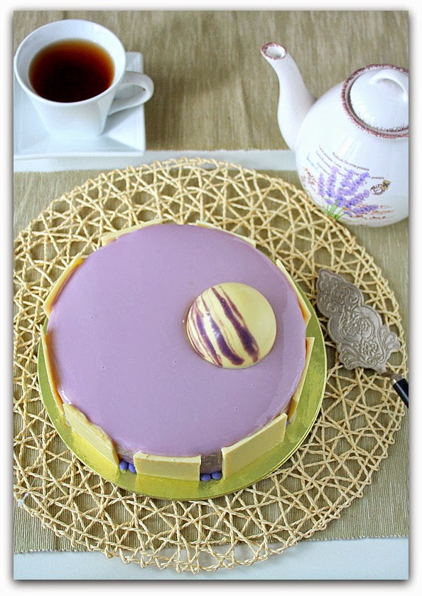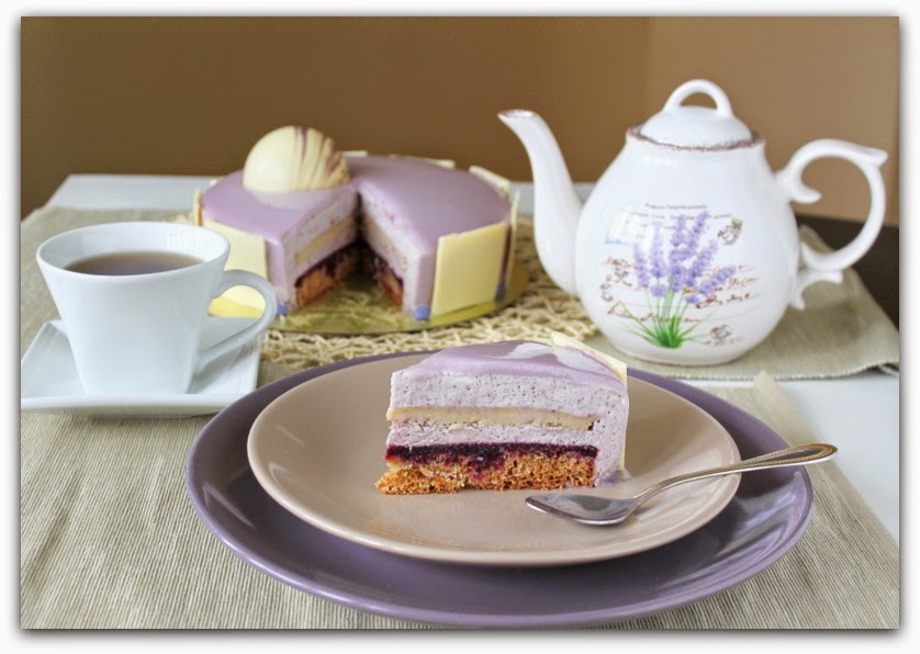 Торт получился очень лавандовым - от коржа до самой глазури! Тем, кто боится интенсивного цветочного аромата, рекомендую убрать лаванду из нескольких слоев этого десерта. А если вам тяжело найти в себе силы приготовить все элементы десерта, можно побаловать себя просто лавандовым муссом (заморозив его в порционных формочках), украшенным свежей черникой! Это очень вкусно, и сразу такой... Прованс-Прованс!