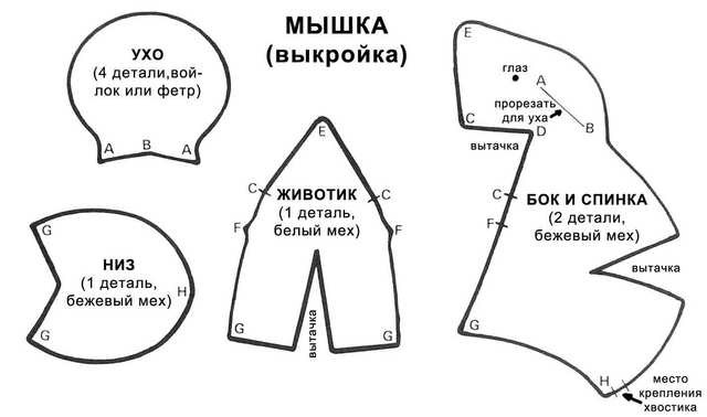 Все детальки сшить, вырезать из фетка овальчики, на них пришить бусинки, овальчики я обвела простым карандашом по контуру для выразительности, вышить брови. Носу руками придать форму (или в процессе вязания можно вставить проволоку тогда будет лучше деражаться, но у моего мыша и без нее нос к верху))))