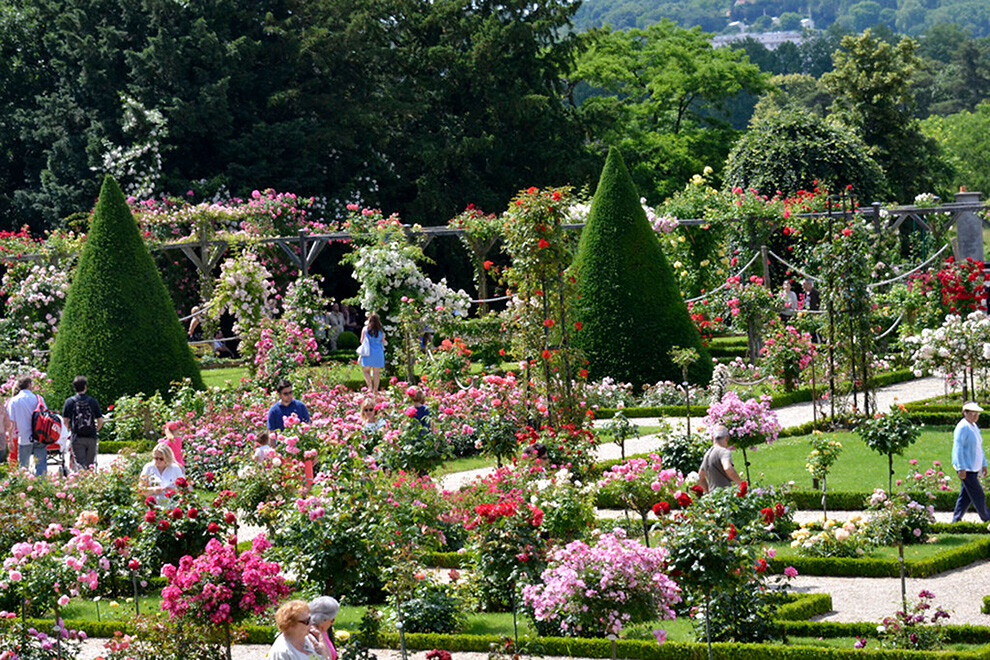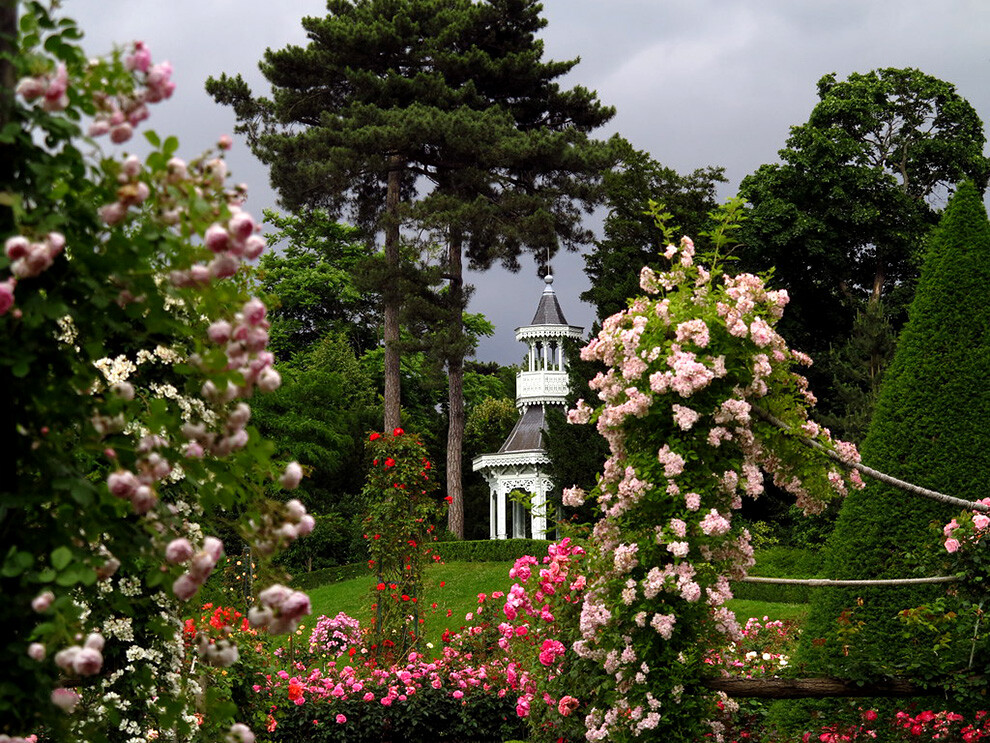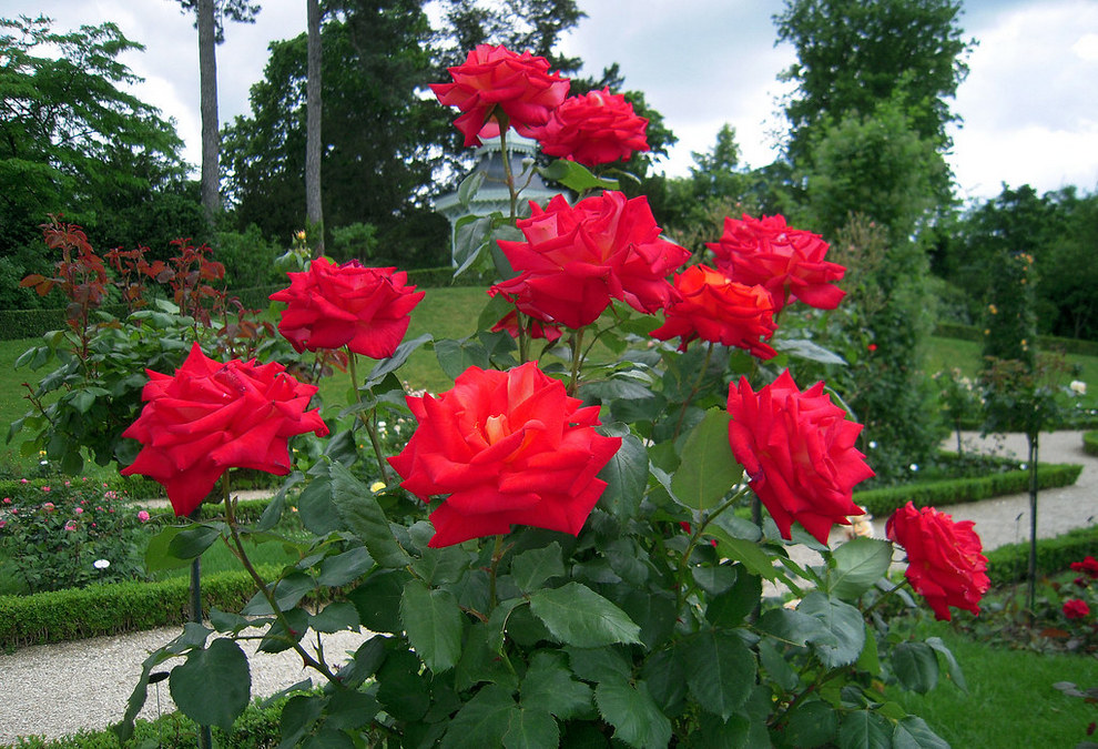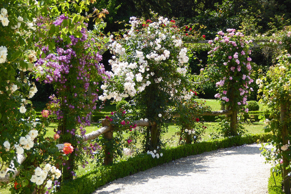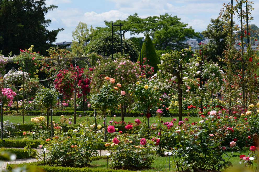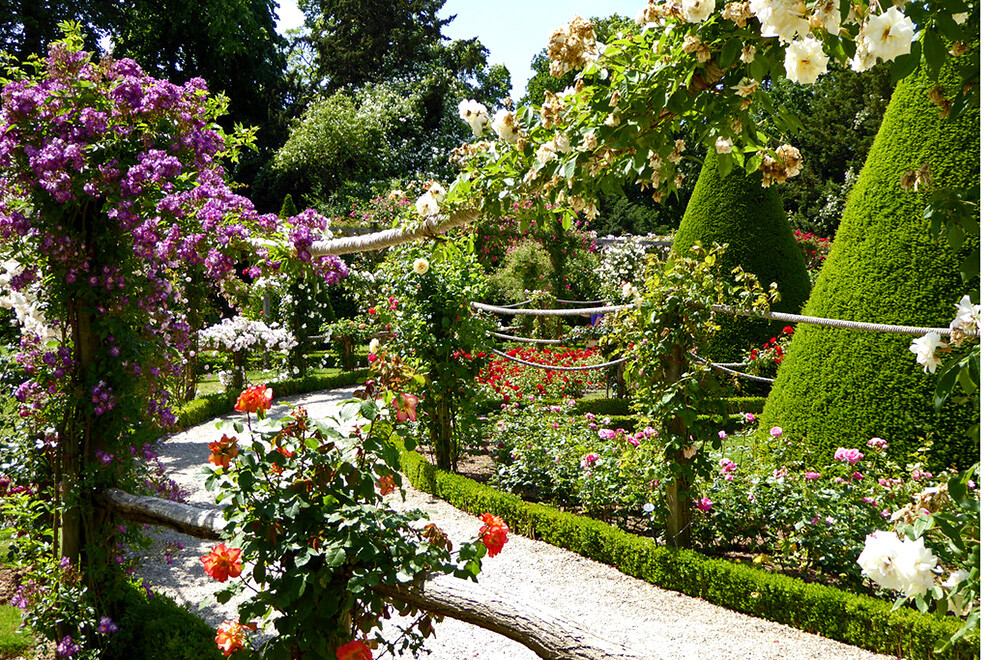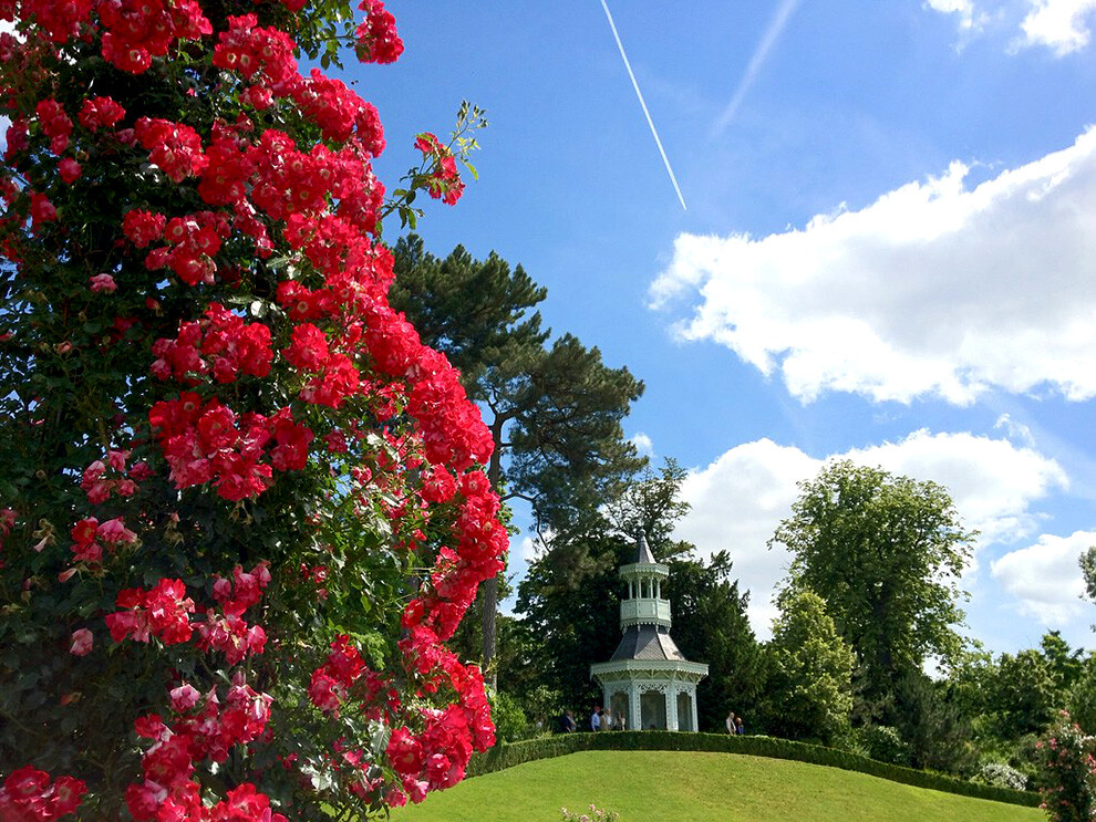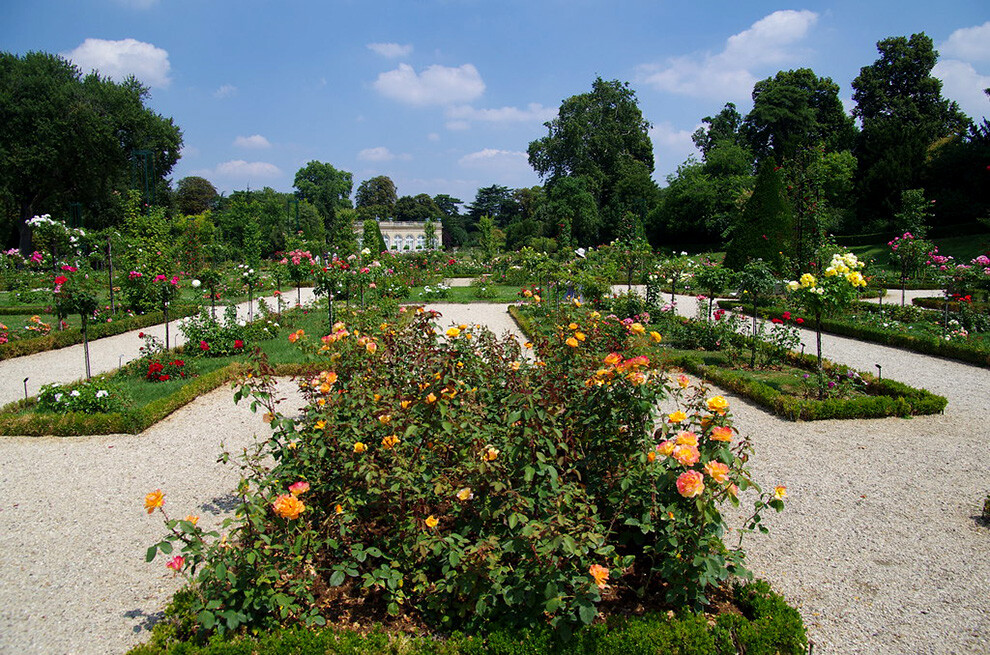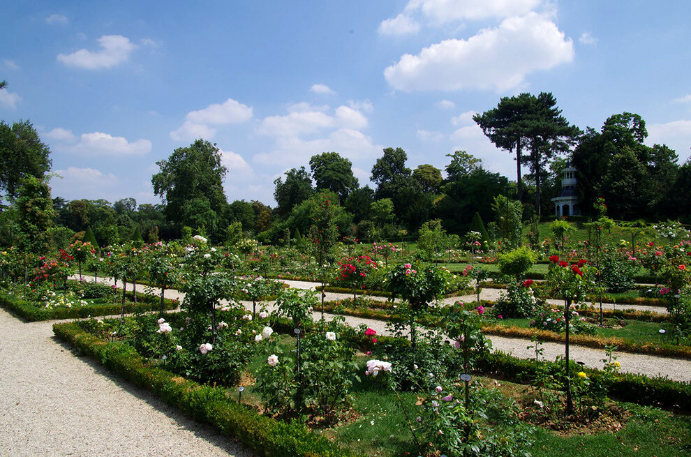 Розарий парка Багатель в Париже - всемирно известный сад в Булонском лесу,основанный в 1775 году.Это старейший и самый известный розарий во Франции,где представлено более 9000 кустов роз (около 1200 сортов),включая новинки селекции,расположенные в романтическом парке площадью 24 га.