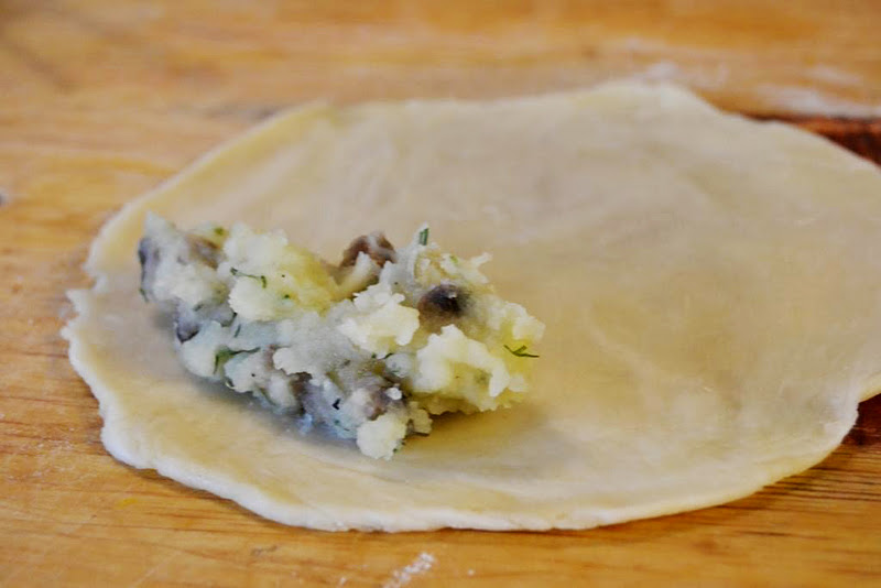Начинка: картофель очистить, нарезать маленькими кубиками и отварить.