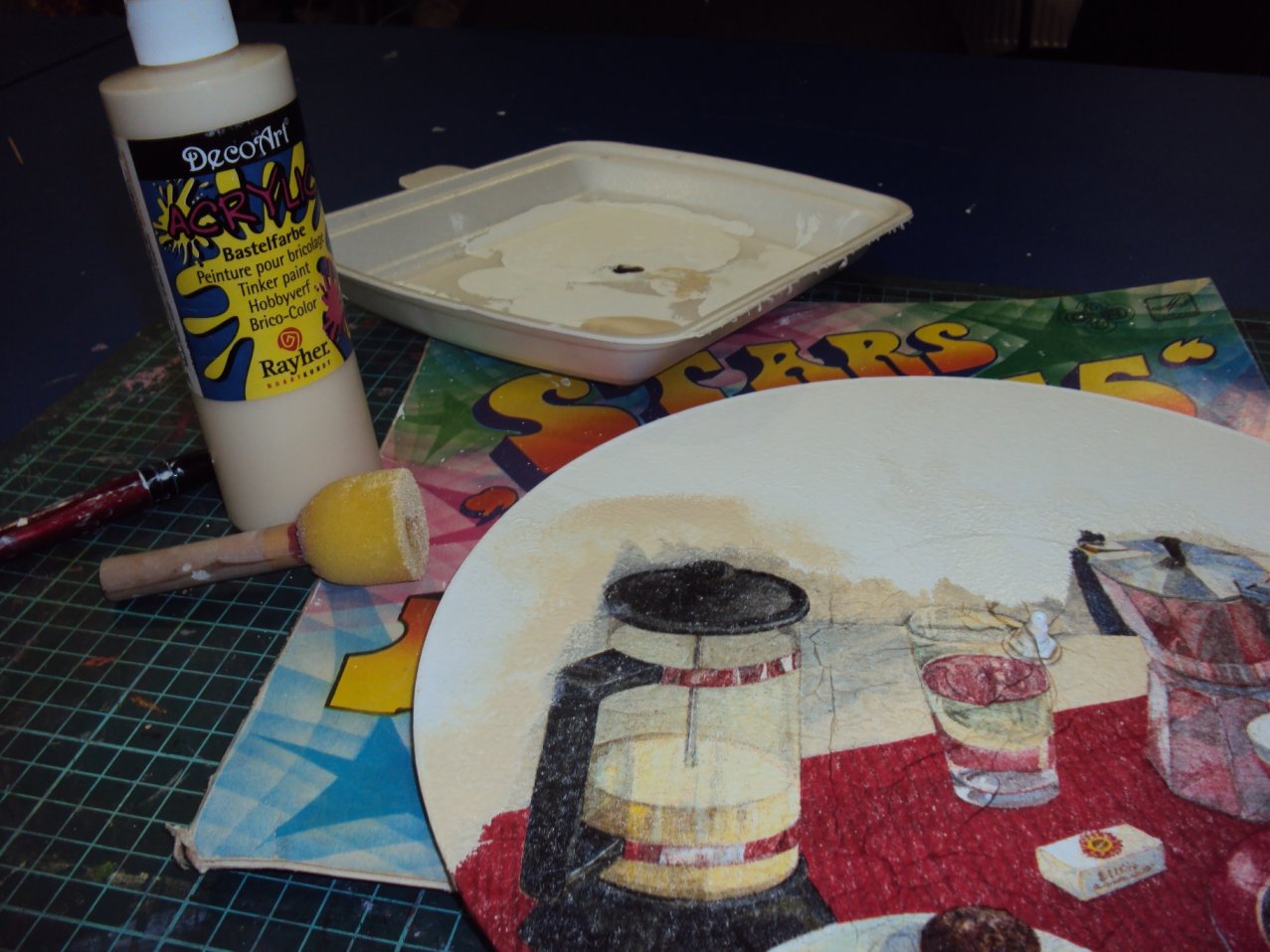 Хочу предложить вашему вниманию МК по декупажу пластинки, при желании можно оформленную таким образом основу и заскрапить. В моём случае диаметр пластинки 30 см.