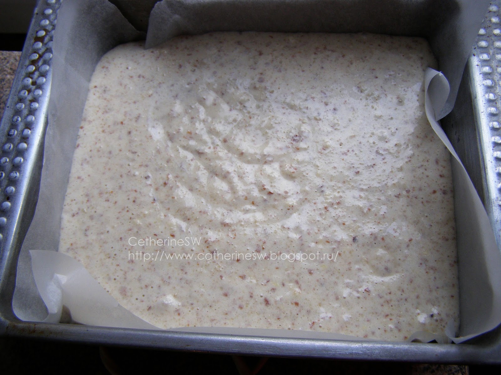 6. Форму выстелить пергаментом. Вылить тесто. Поставить на средний уровень духовки и выпекать 30-40 минут. Готовность проверим с помощью лучины. Проткнем бисквит и вытащим. Сухая - готово.