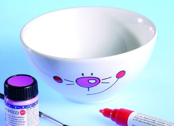 Маркер перед использованием как следует встряхнуть и несколько раз нажать на конец, пока не появится краска.Сначала попробуйте на бумаге. потом начните рисовать на миске. Рисовать следует быстро и осторожно.