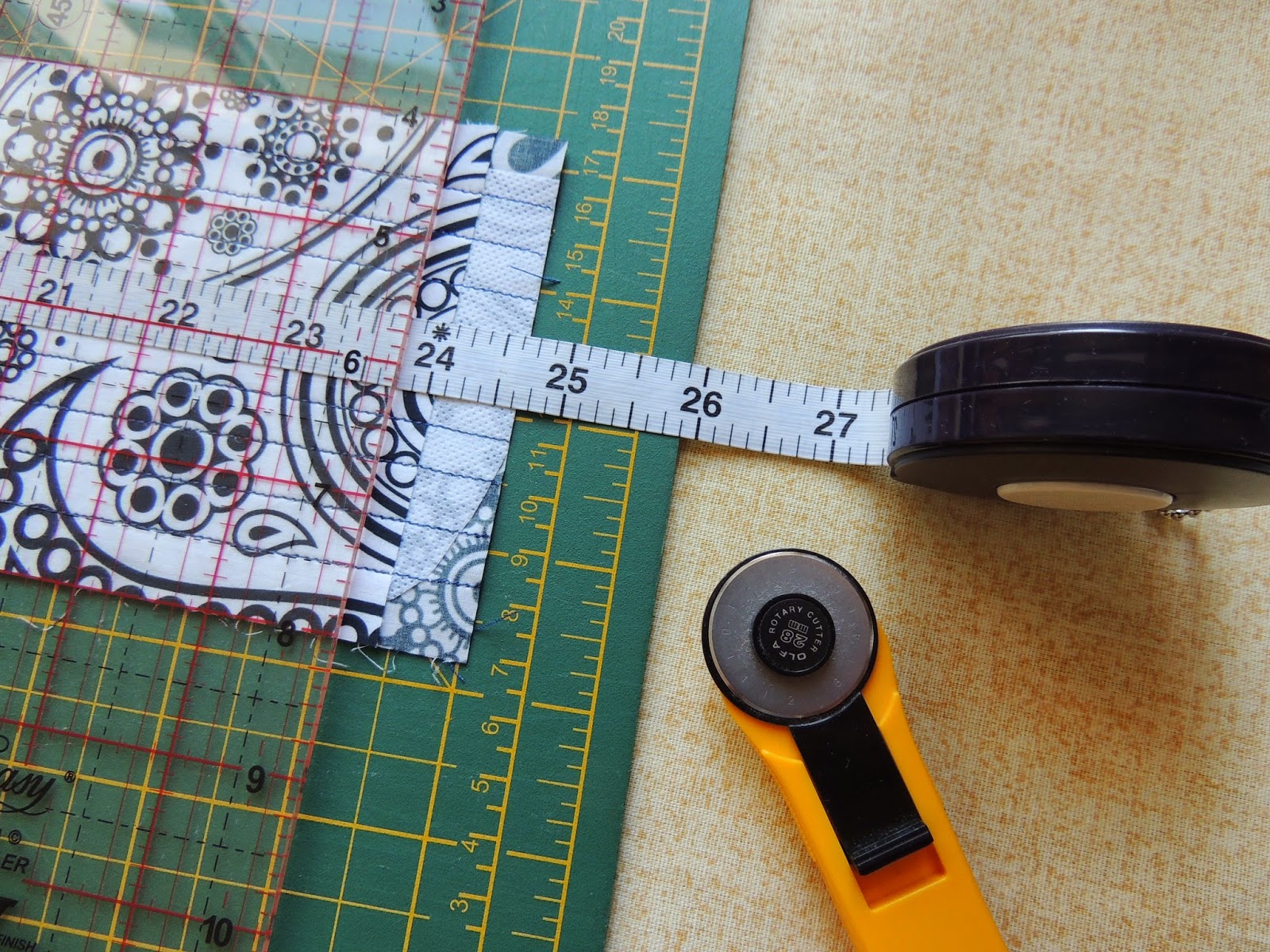 Определяемся с высотой карманов. Я отступила полтора дюйма от верхнего края. В итоге глубина карманов выходит 7" - 1,5" = 5,5" ( около 15 см).