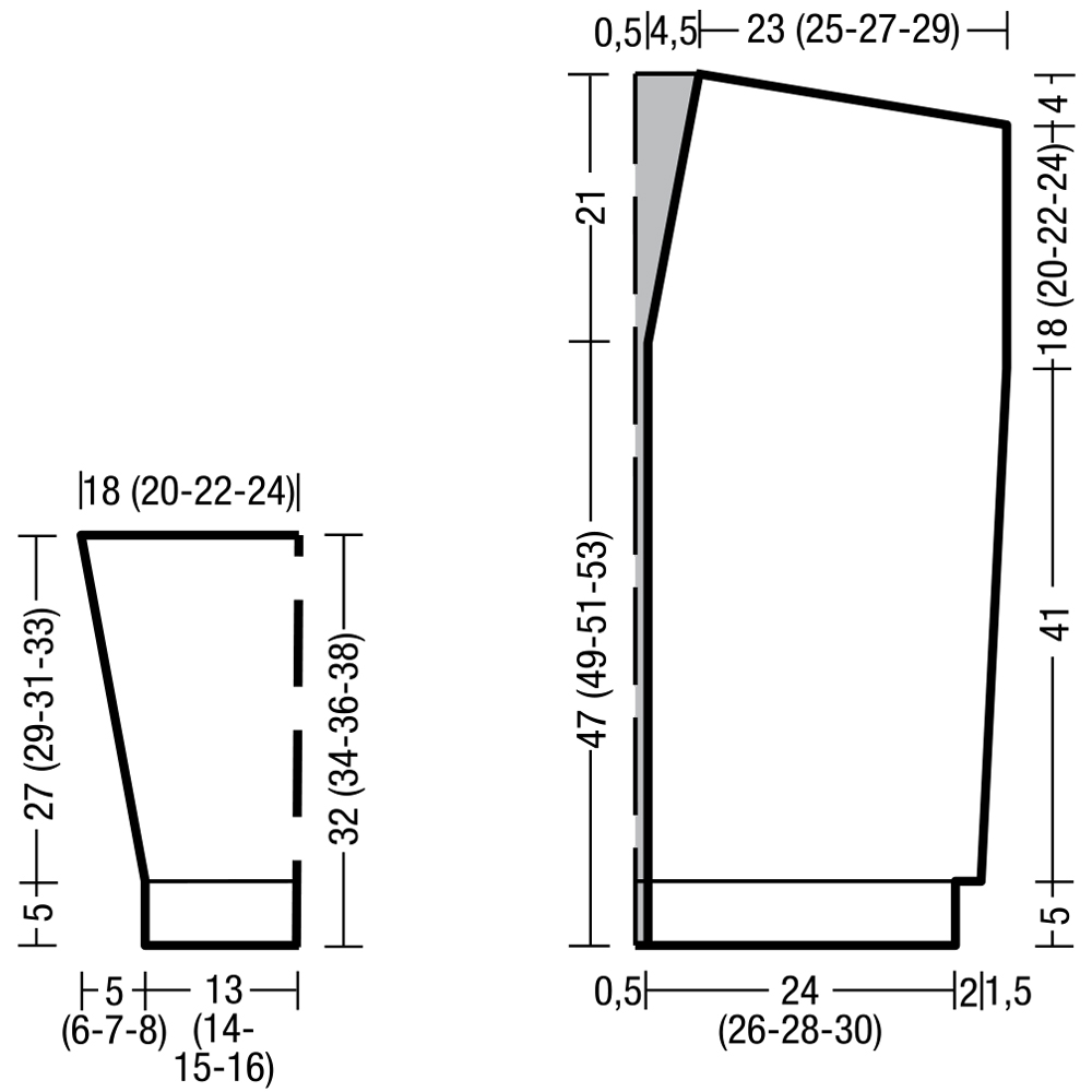 Для скосов прибавить с обеих сторон в 7 (7-7-5-м) р. 1 раз по 1 п., затем 5 (2-2-0) раз в каждом 8-м р. и 4 (9-10-14) раз в каждом 6-м р. по 1 п. = 67 (75-81-89) п. Прибавленные петли включать в узор.