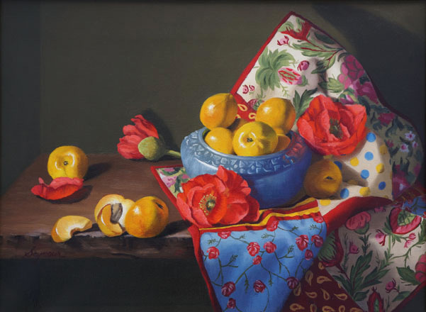 За окном — серые пейзажи поздней осени. Ноябрь — время обнаженной природы и какой то хрупкой незащищенности. Этот месяц напоминает чистый лист, пахнущий морозной свежестью. В такие дни особенно хочется раскрасить мир яркими красками и добавить в него капельку тепла и света. Поэтому предлагаю вам сегодня уважаемые читатели немного летних красок и очень изысканных созерцательных натюрмортов кисти художницы Клаудии Сеймур (Claudia Seymour.)