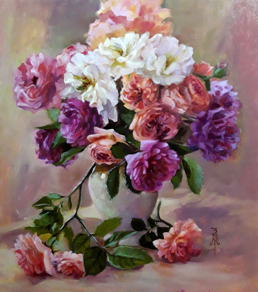 ✨Художник Злобина Марина Владимировна. Весенний радостный букет Нам сейчас роскошных роз дороже!...