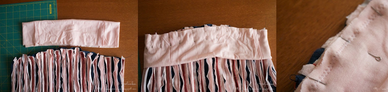 Нижняя часть уже с подгибом поэтому просто пришиваем ее к белому топу.