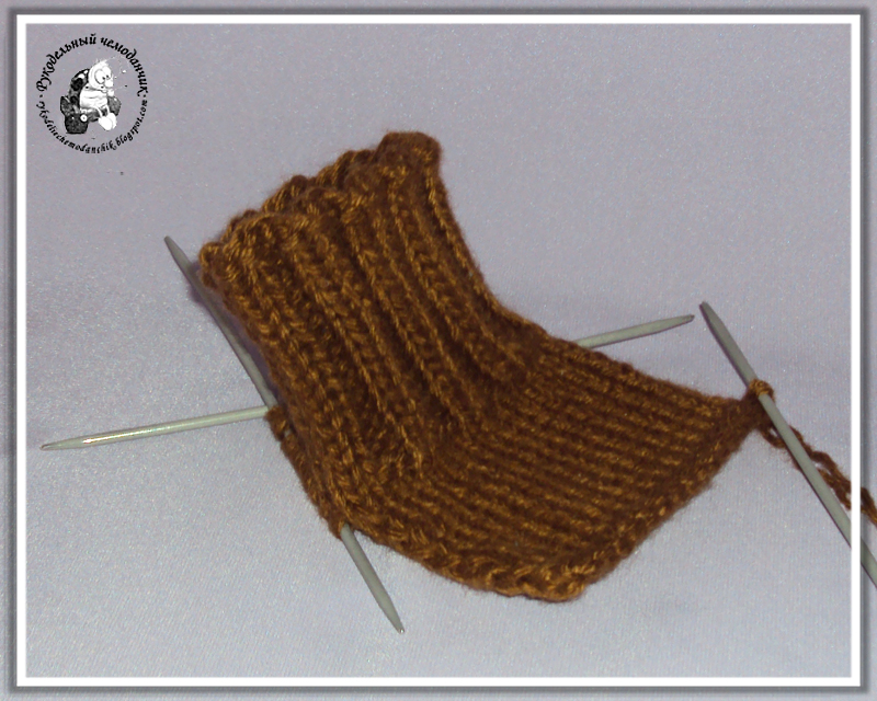 Поскольку я не люблю длинный верх, то сразу после резинки перехожу к вязанию пятки (далее вяжем прямые и обратные ряды до конца вязания носка, не по кругу!!!).