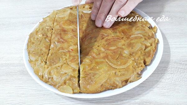 Разогреваю сковороду и выливаю в нее растительное масло. Уменьшаю мощность плиты до возможного минимума, и вливаю тесто. Разравниваю. Накрываю крышкой и выпекаю с обеих сторон до золотистого цвета. Примерно по 8 минут сторона.