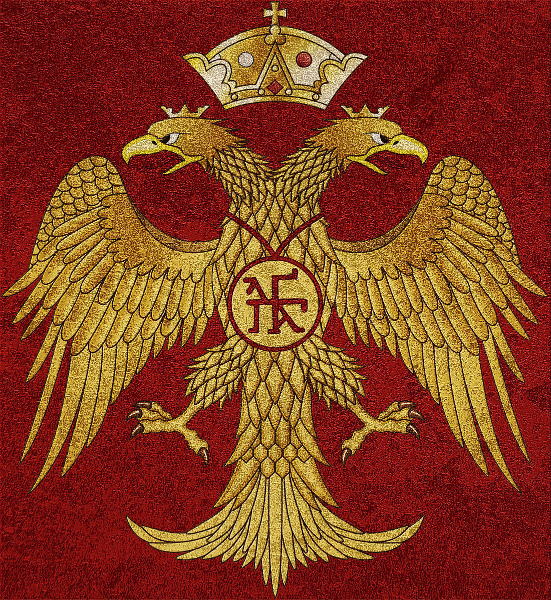 Эмблему двуглавого орла, как уже отмечалось, впервые использовали древние хетты. У хеттов её заимствовали римляне: император Константин (306-337) принял изображение чёрного двуглавого орла на золотом поле в связи с переносом столицы империи из Рима в Византий (Константинополь). По его замыслу, эта эмблема символизировала две головы (столицы) одного тела (империи). В 395 году, когда Римская империя окончательно раскололась на две части, двуглавый орёл вошёл в герб Восточной Римской (Византийской) империи.