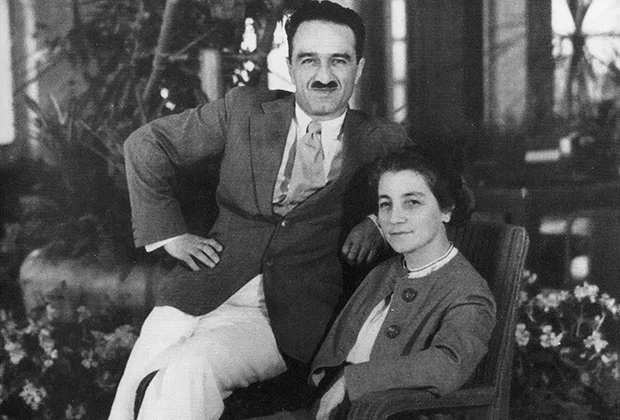 С женой Ашхен Лазаревной на борту парохода «Нормандия». Первый визит в США, 1936
