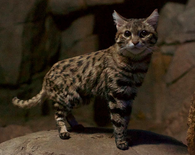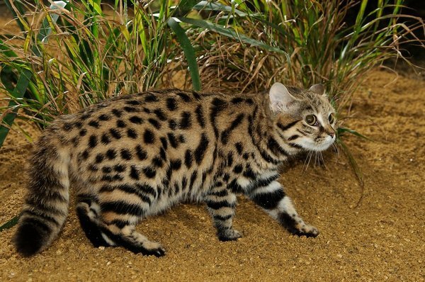 – самый мелкий представитель семейства кошачьих. В среднем такие кисоньки весят 1,6 кг, длина тела 36-52 см, а длина хвоста 13-20 см. Живут кошки в дикой природе на равнинах южной Африки.