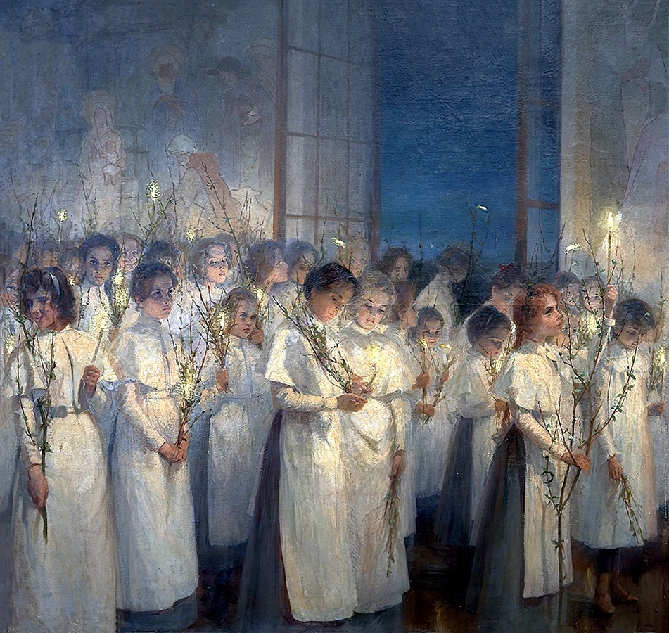 Собственно, к чему я веду, дорогой мой читатель? Вербное наше воскресенье — не банальная географическо-ботаническая замена с подменой. Дело не в том, что на матушке-Руси в открытом грунте не родится пальмовый лист. Эвона: восточные европейцы по праздникам импортируют сей продукт с Ближнего Востока и радуются себе. И мы бы так могли, да только незачем. Наша верба и наречённый в её честь праздничный день Воскресения Христова — наша полнокровная, целостная духовно-историческая адаптация. Здесь мотив жертвенности и воскресения неотрывен от идеи выживания в суровом климате, и потому универсально ясен всякому народу Российской Федерации. Здесь гибкое, подвижное, не жёстко оформленное женское начало вербовой веточки дополнило патриархальную догматику библейского мифа. Зацветая допрежь иных цветов, почек и иной ботанической ясности, верба являет собою этакое русское Инь: древнее, неспешное, интуитивное. За что, к слову, очень ценится художниками отечественной школы, обожающими привносить элементы символизма и многослойные смыслы в свои творения. Неласковое небо, серые лужи, голые деревья, и вдруг — мягкие пушистые «серёжки»! Торжество тактильности средь сурового пейзажа. Здорово же! Так что умницу-вербу никто символом русской Пасхи «не назначал». Она совпала с нею сама; совместилась во всех критических точках смыслов и чувств...