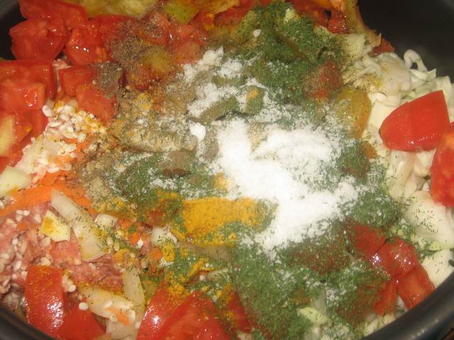 Посолили, добавили специи по вкусу, по желанию сушёный укроп и петрушку.