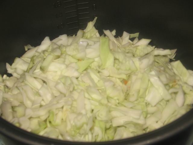 Сложить капусту в кастрюлю мультиварки.