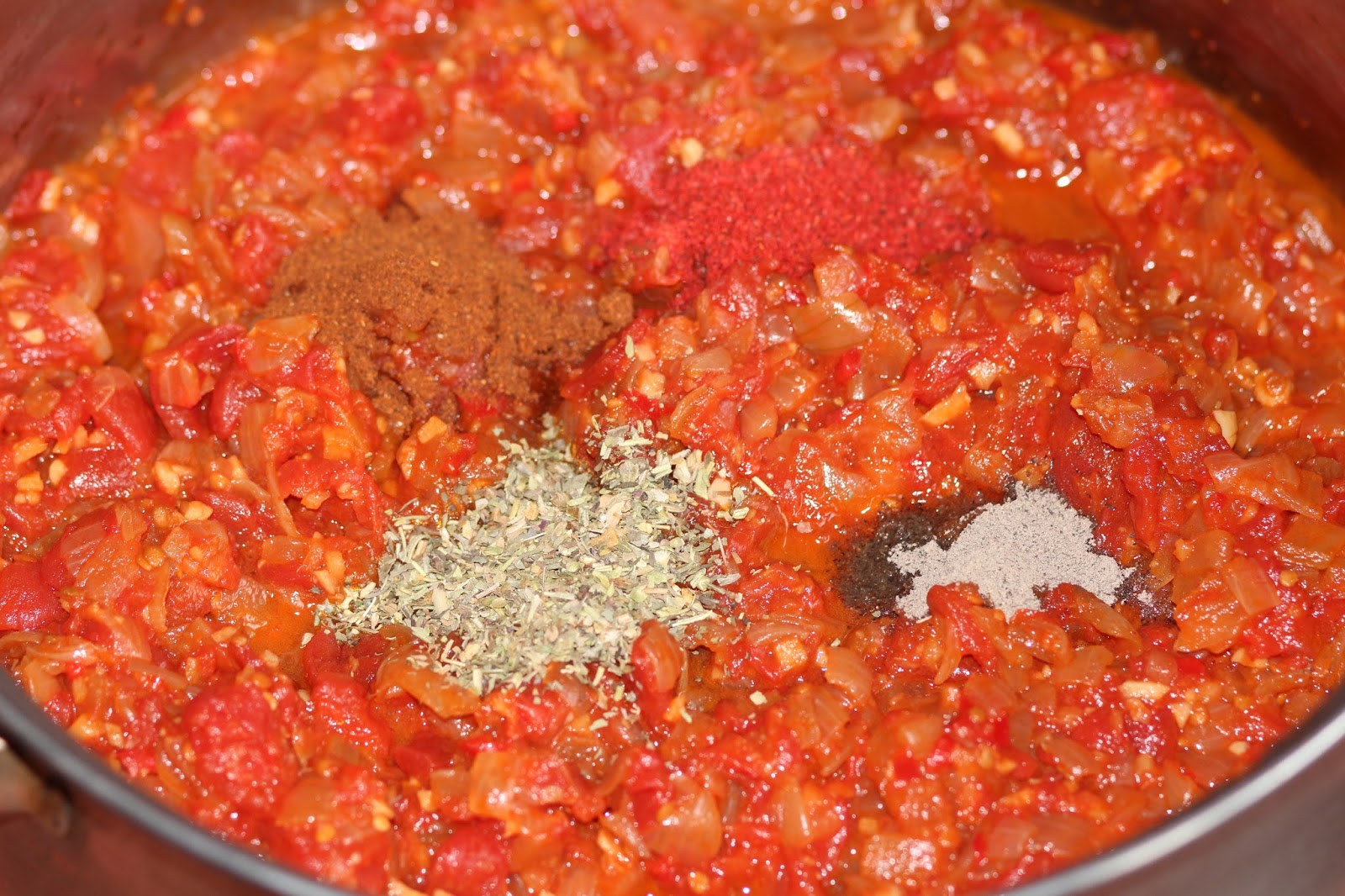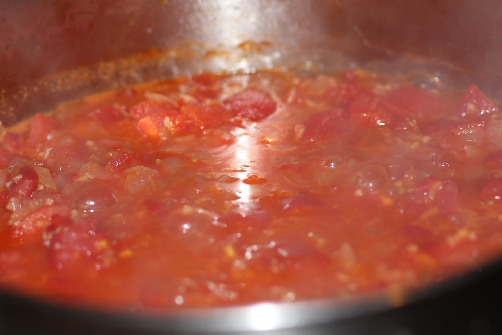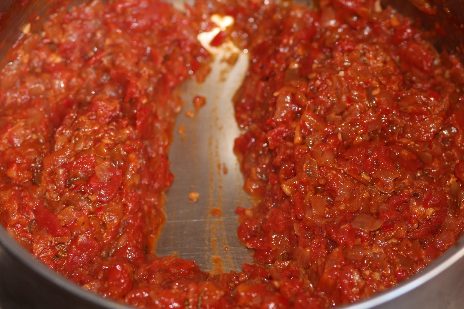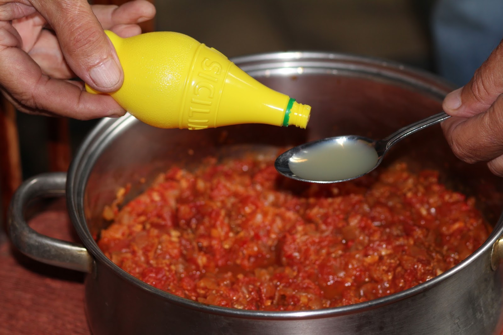 11. Смешать в кастрюльке помидоры, острый перец, чеснок, имбирь и обжаренный лук.