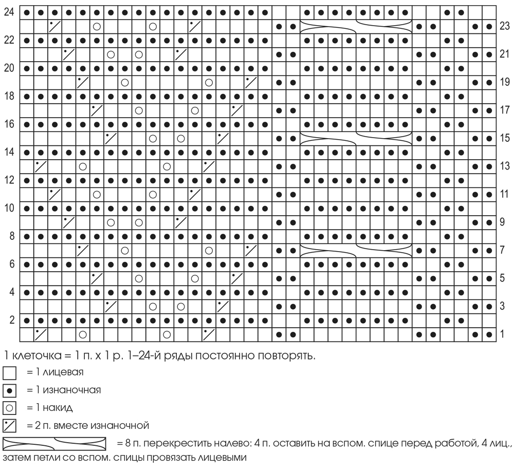 Вязать согласно схеме, 1–24-й ряды постоянно повторять.