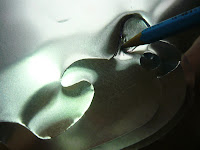 Да, рисунок можно нарисовать простым карандашом, потом выдавливать. А можно сразу импровизировать, у кого какие способности. А чтобы рельефнее была чеканка, я подложила под работу сложенное кухонное полотенце. Блог Каликова Надежда [497x656]