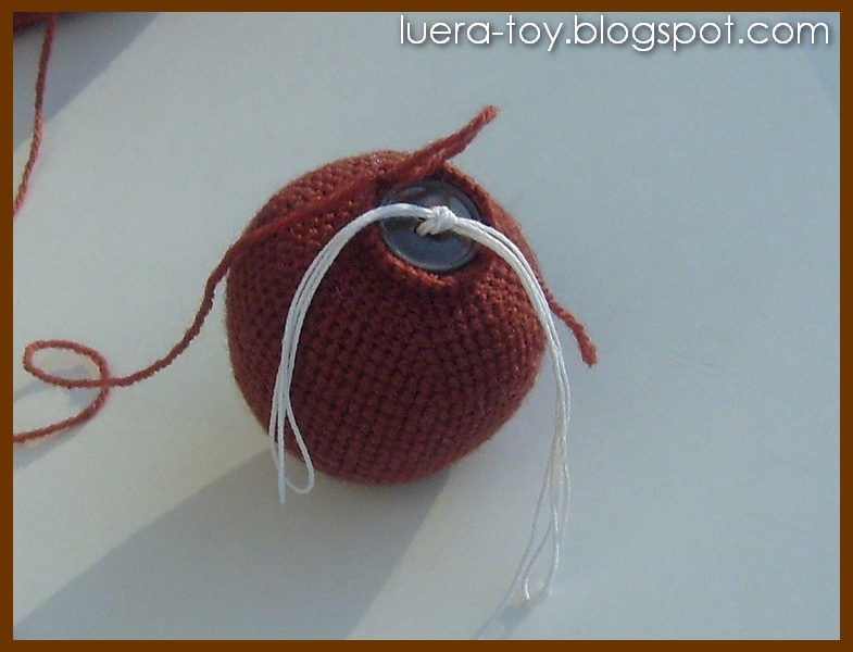 Большинству своих игрушек я креплю голову (а иногда и другие конечности), с помощью пуговичного крепления, а иначе говоря, на пуговичный шарнир. При таком креплении голова может поворачиваться в разные стороны, что увеличивает качество и функциональность игрушки