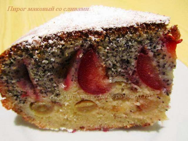 Д-р Оеткер использовал для этого пирога консервированную вишню (370 гр) в прослойке между двумя видами теста, 30 гр мака - в одну половину теста и одно тёртое яблоко (взбрызнутое 1 ст.л. лим. сока) - в другую половину.