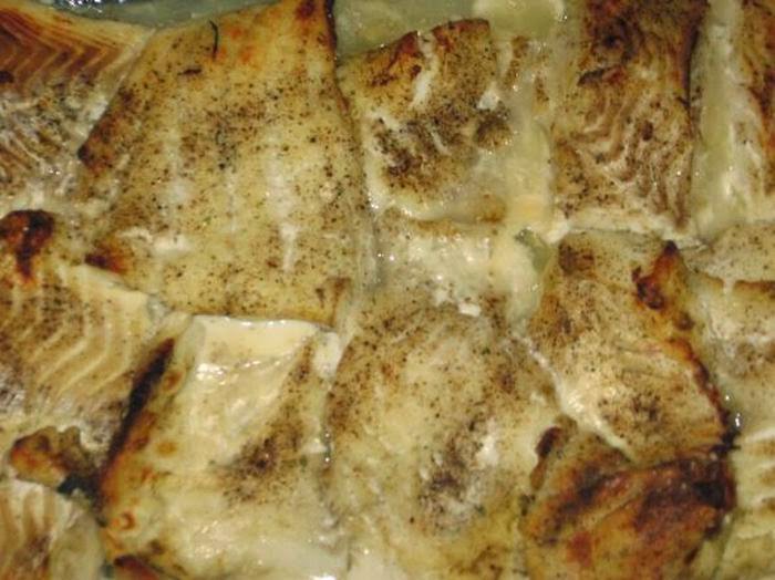 Треску мы нарезали порционно (небольшими кусками)