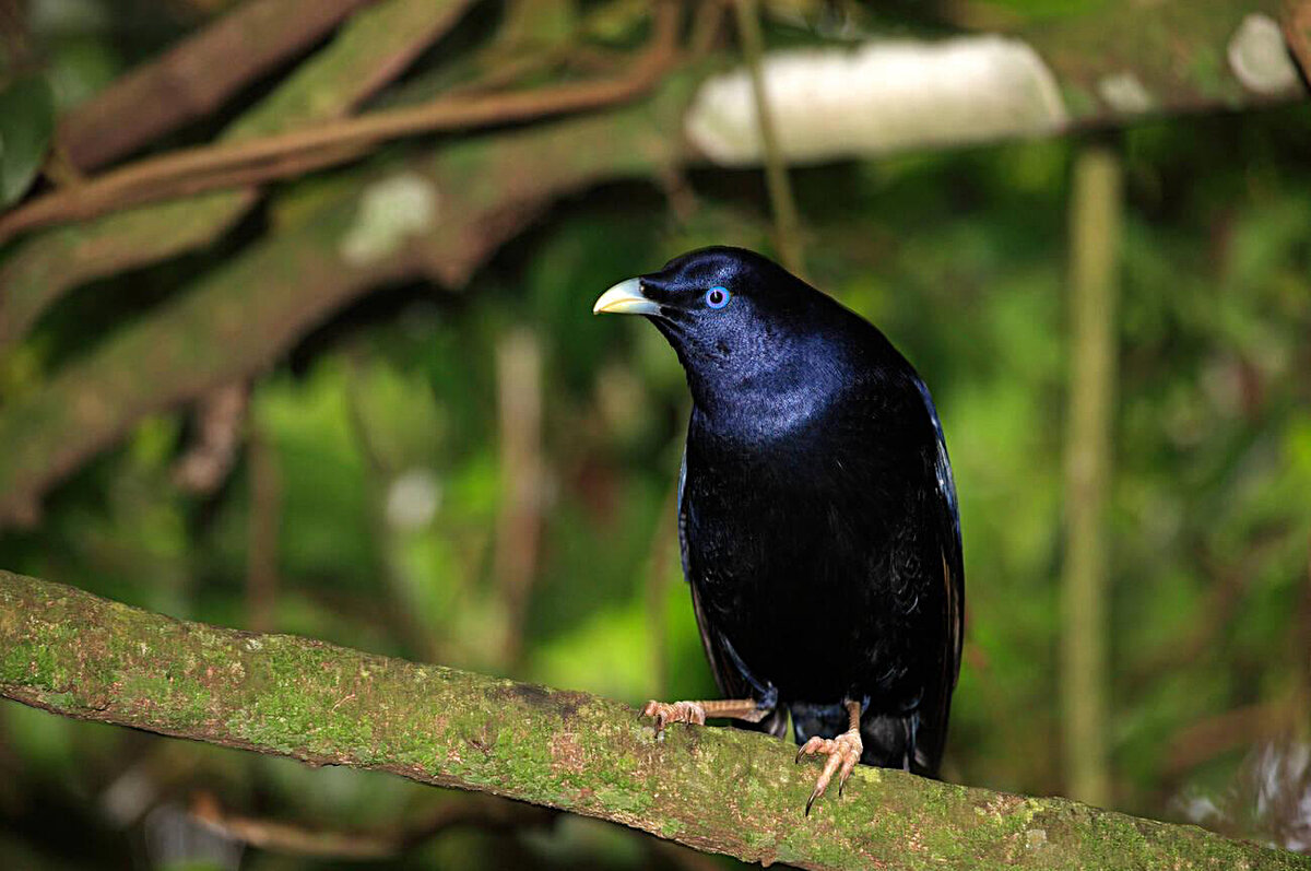 Но самцы имеют атласное иссиня-чёрное оперение. Даже для богатой на природные краски Австралии вид выглядит экзотично и элегантно.